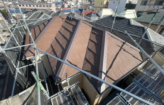 屋根を直したかったけど、古い屋根を剥がす工事は大変そうで…。でも、ここは今の屋根の上から新しい屋根を重ねる方法でやってくれたんです!工期も短くて、廃材も少ないからお財布にも優しかった!前より断熱効果が上がったのか、家の中が静かになった気がして大満足です!